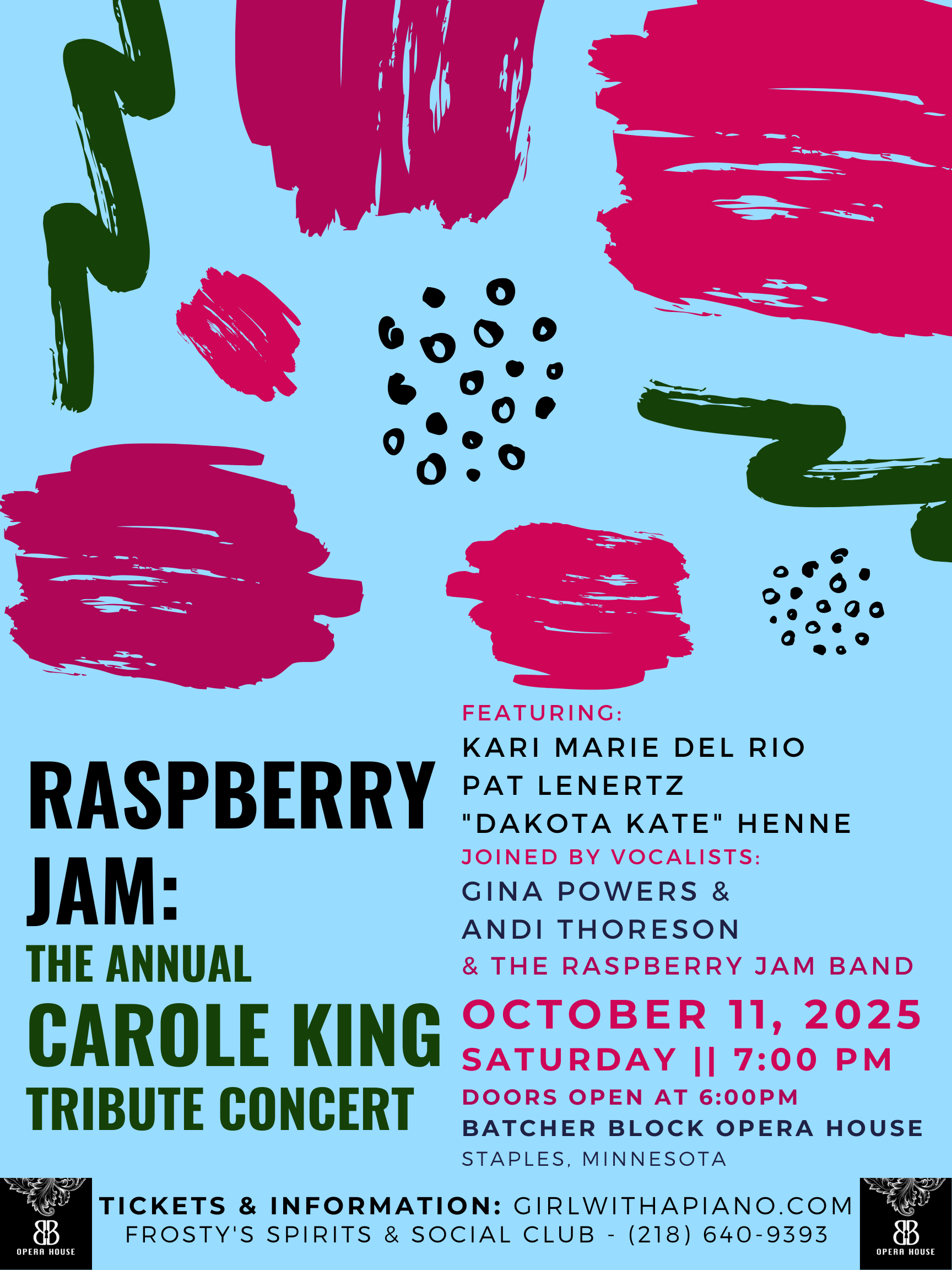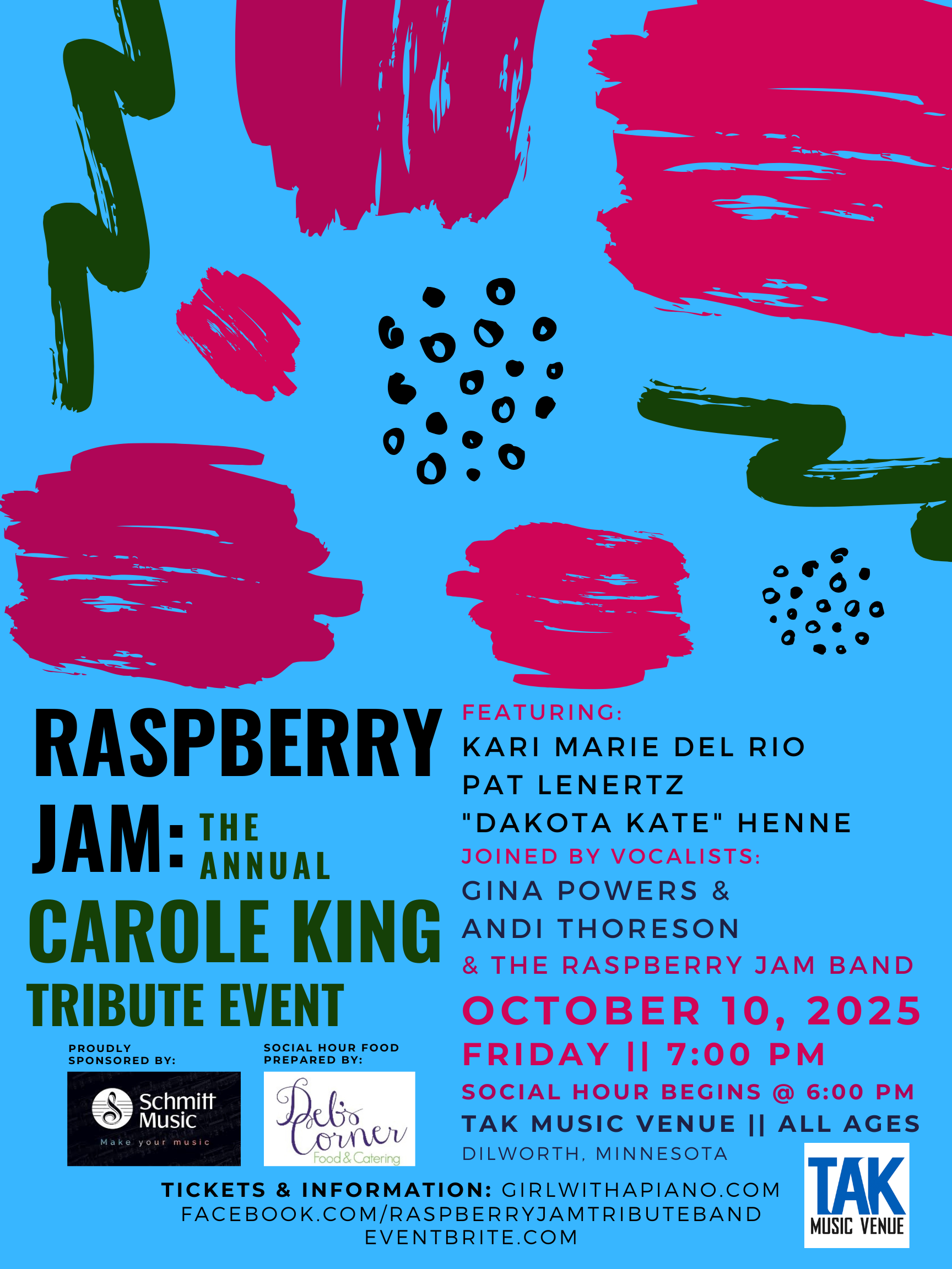 Kari Marie del Rio is pleased to announce the return of the beloved concert, “Raspberry Jam: An annual Carole King tribute event”, hosted at TAK Music Venue in Dilworth, MN, on Friday, October 10.